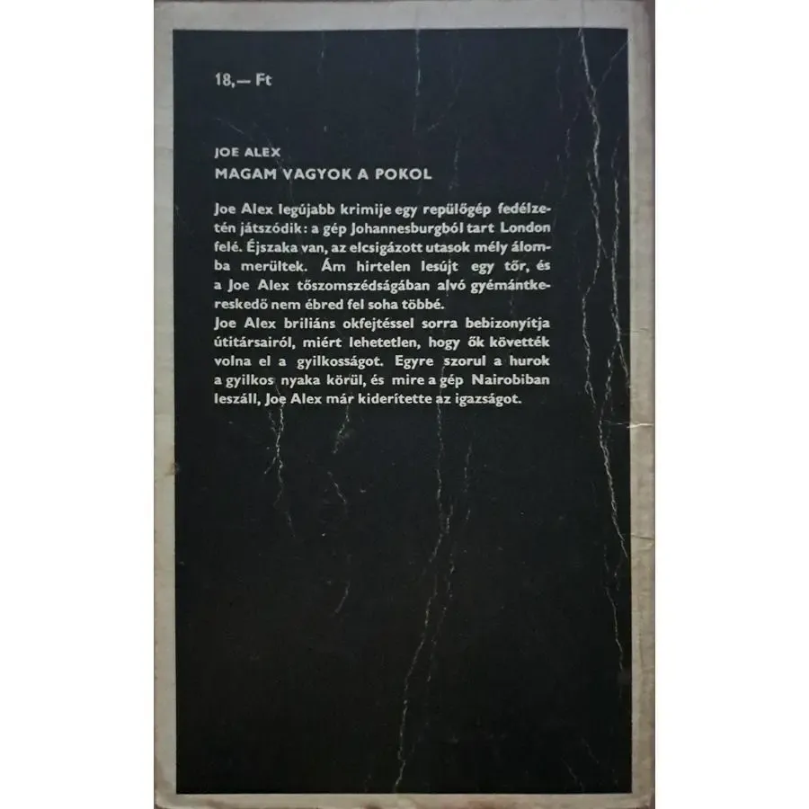 Az író legújabb krimije egy repülőgép fedélzetén játszódik: a gép Johannesburgból tart London felé. Éjszaka van, az elcsigázott utasok mély álomba merültek. Ám hirtelen lesújt egy tőr, és a Joe Alex tőszomszédságában alvó gyémántkereskedő nem ébred fel soha többé. Joe Alex briliáns okfejtéssel sorra bebizonyítja útitársairól, miért lehetetlen, hogy ők követték volna el a gyilkosságot. Egyre szorul a hurok a gyilkos nyaka körül, és mire a gép Nairobiban leszáll, Joe Alex már kiderítette az igazságot.